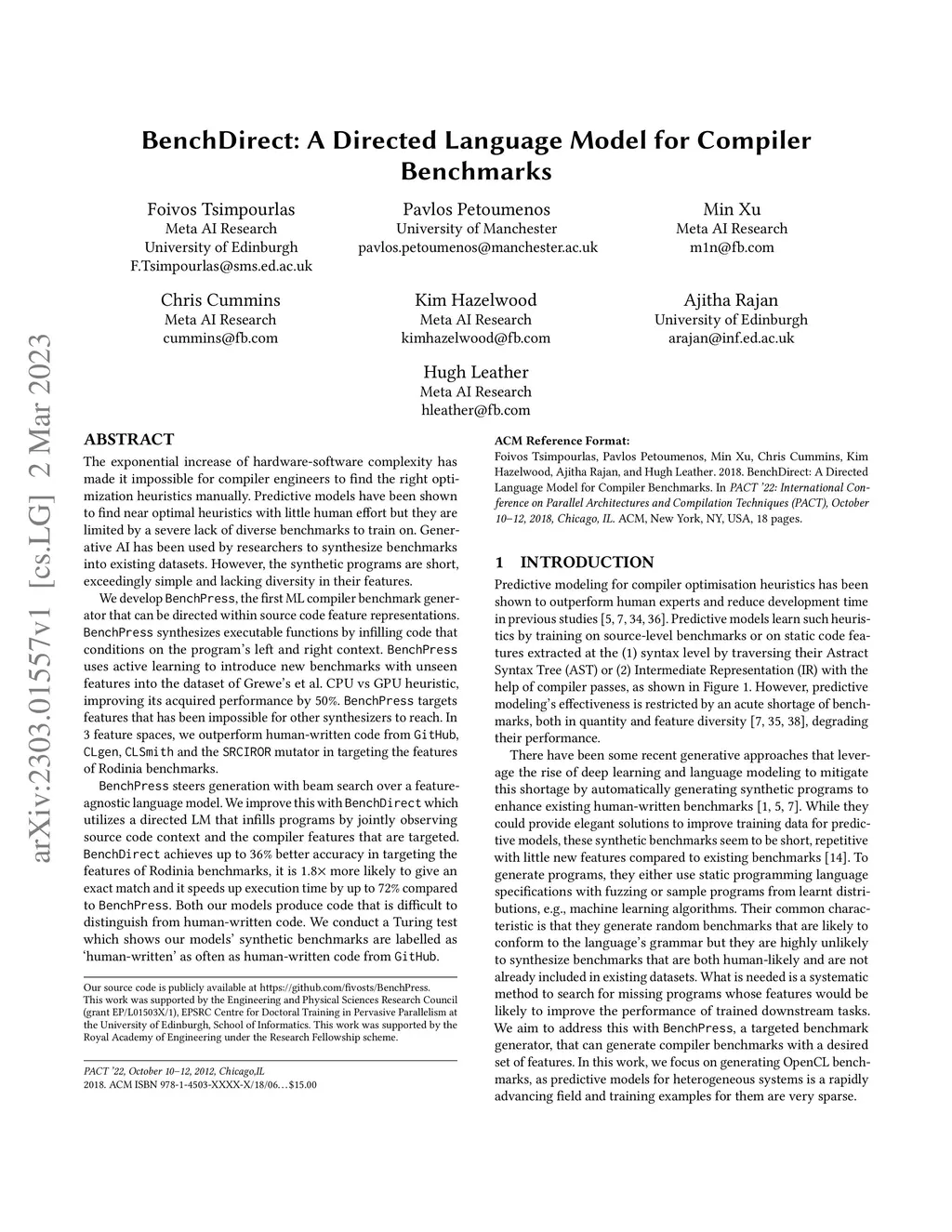 BenchDirect: A Directed Language Model for Compiler Benchmarks