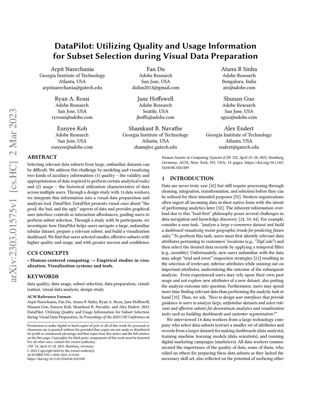 DataPilot: Utilizing Quality and Usage Information for Subset Selection