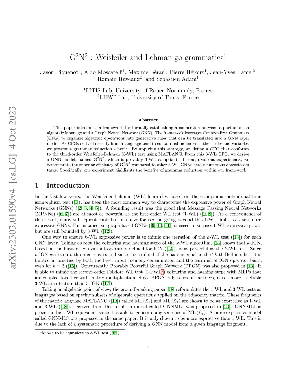 Technical report: Graph Neural Networks go Grammatical