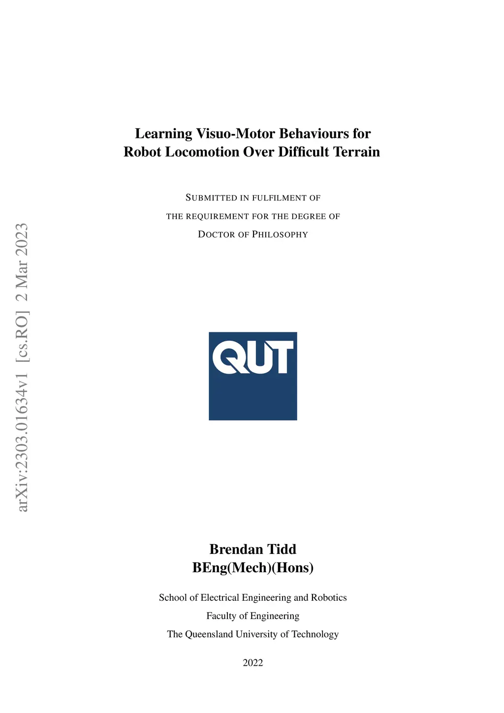 Learning Visuo-Motor Behaviours for Robot Locomotion Over Difficult