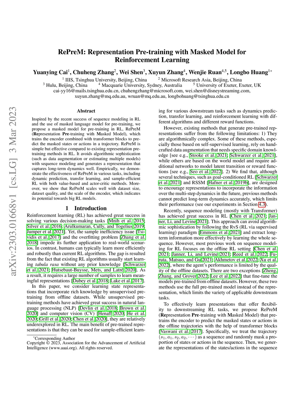 RePreM: Representation Pre-training with Masked Model for Reinforcement