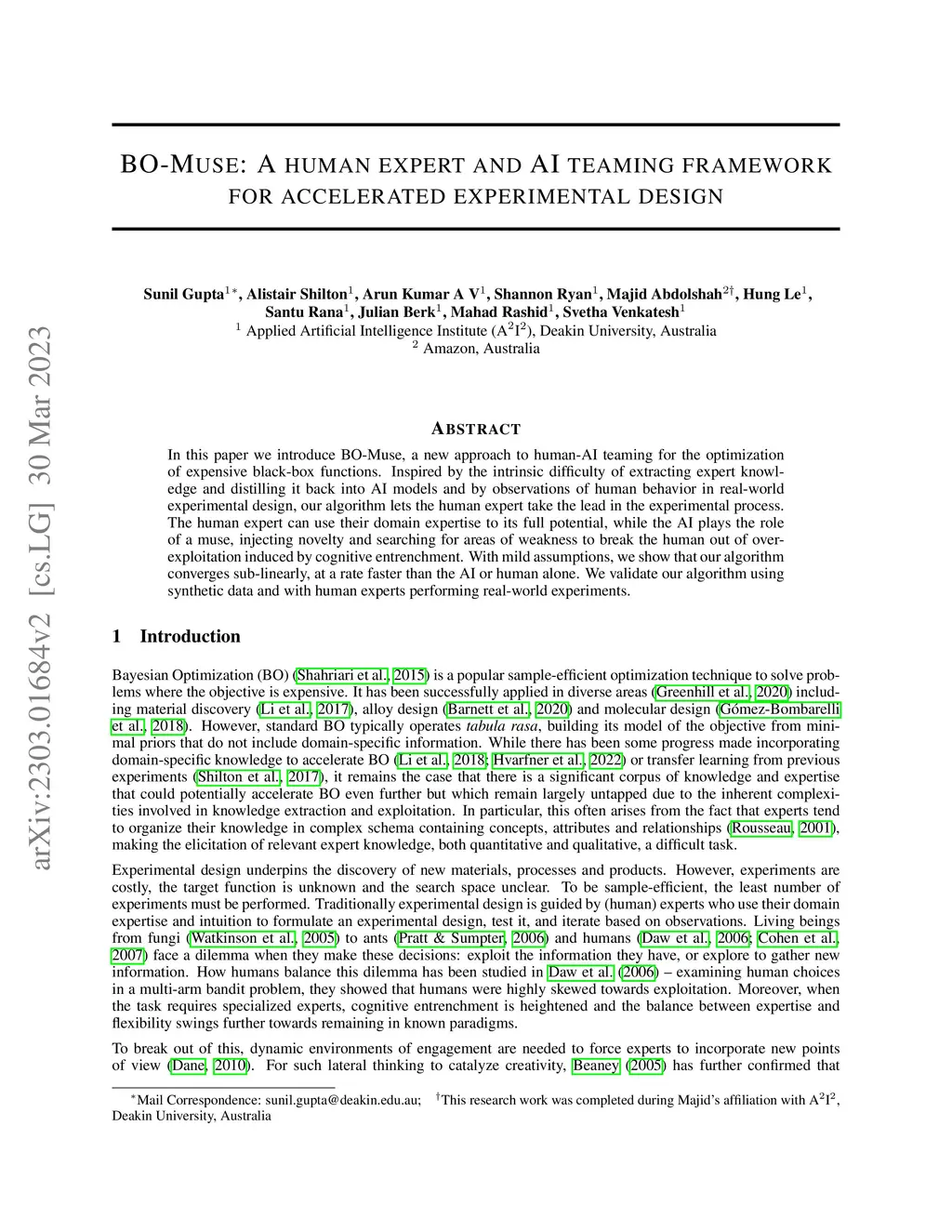 BO-Muse: A human expert and AI teaming framework for accelerated
