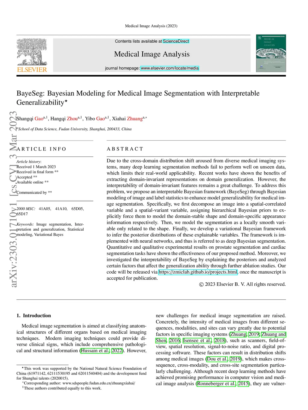 BayeSeg: Bayesian Modeling for Medical Image Segmentation with