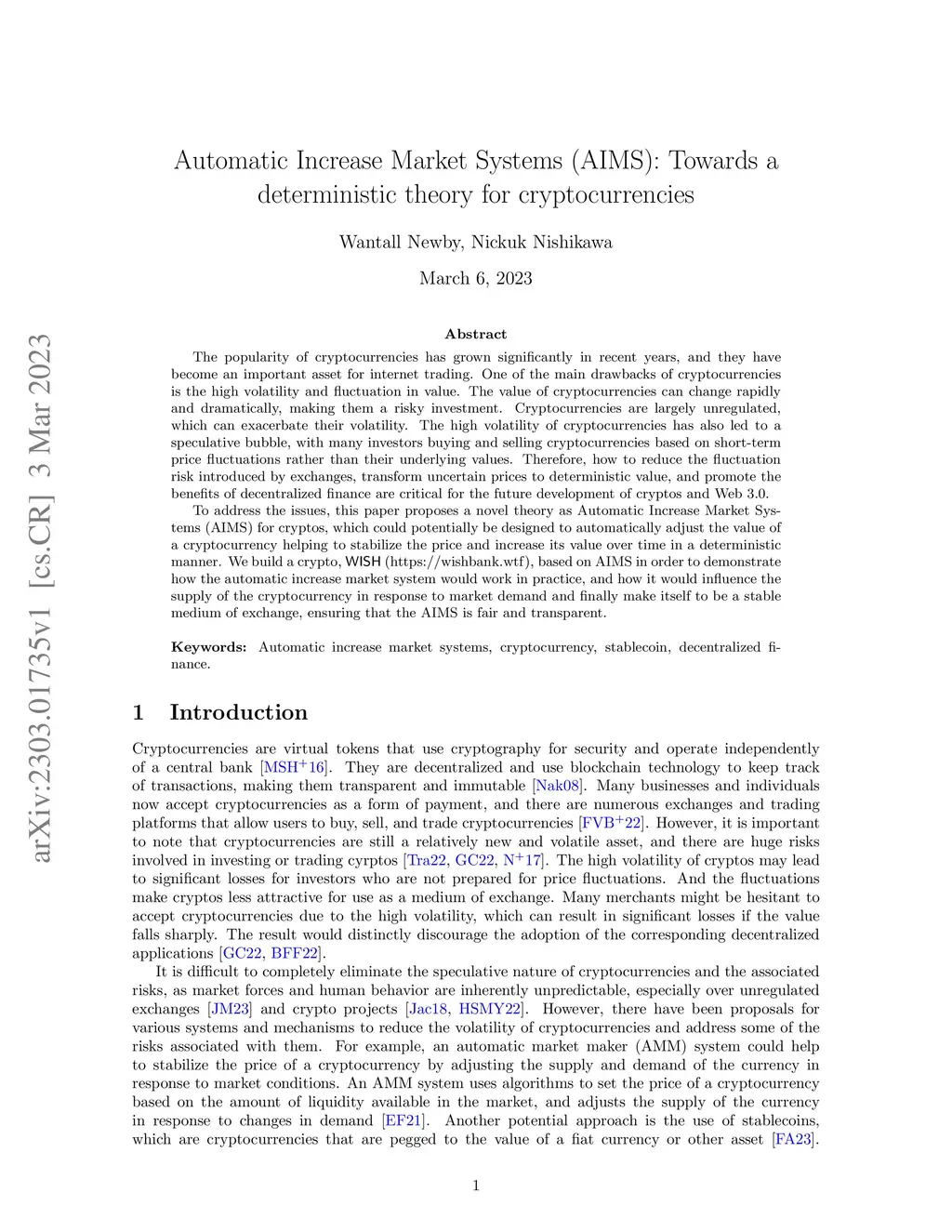 The popularity of cryptocurrencies has grown significantly in recent years, and they have become an important asset for internet trading. One of the main drawbacks of cryptocurrencies is the high volatility and fluctuation in value. The value of cryptocurrencies can change rapidly and dramatically, making them a risky investment. Cryptocurrencies are largely unregulated, which can exacerbate their volatility. The high volatility of cryptocurrencies has also led to a speculative bubble, with many investors buying and selling cryptocurrencies based on short-term price fluctuations rather than their underlying values. Therefore, how to reduce the fluctuation risk introduced by exchanges, transform uncertain prices to deterministic value, and promote the benefits of decentralized finance are critical for the future development of cryptos and Web 3.0. To address the issues, this paper proposes a novel theory as Automatic Increase Market Systems (AIMS) for cryptos, which could potentially be designed to automatically adjust the value of a cryptocurrency helping to stabilize the price and increase its value over time in a deterministic manner. We build a crypto, WISH (https://wishbank.wtf), based on AIMS in order to demonstrate how the automatic increase market system would work in practice, and how it would influence the supply of the cryptocurrency in response to market demand and finally make itself to be a stable medium of exchange, ensuring that the AIMS is fair and transparent.