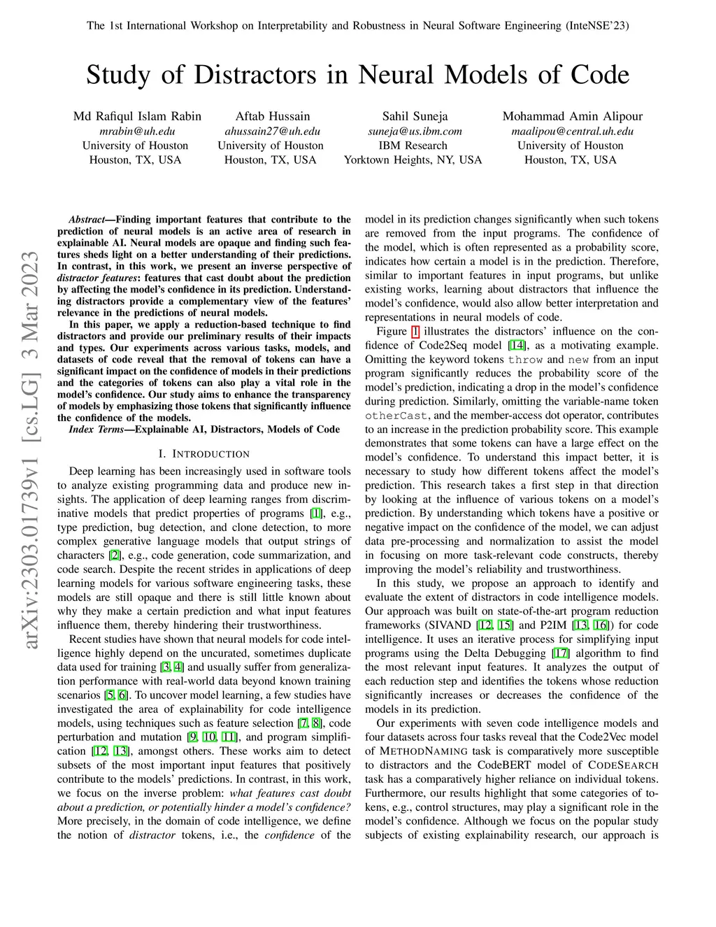 Study of Distractors in Neural Models of Code
