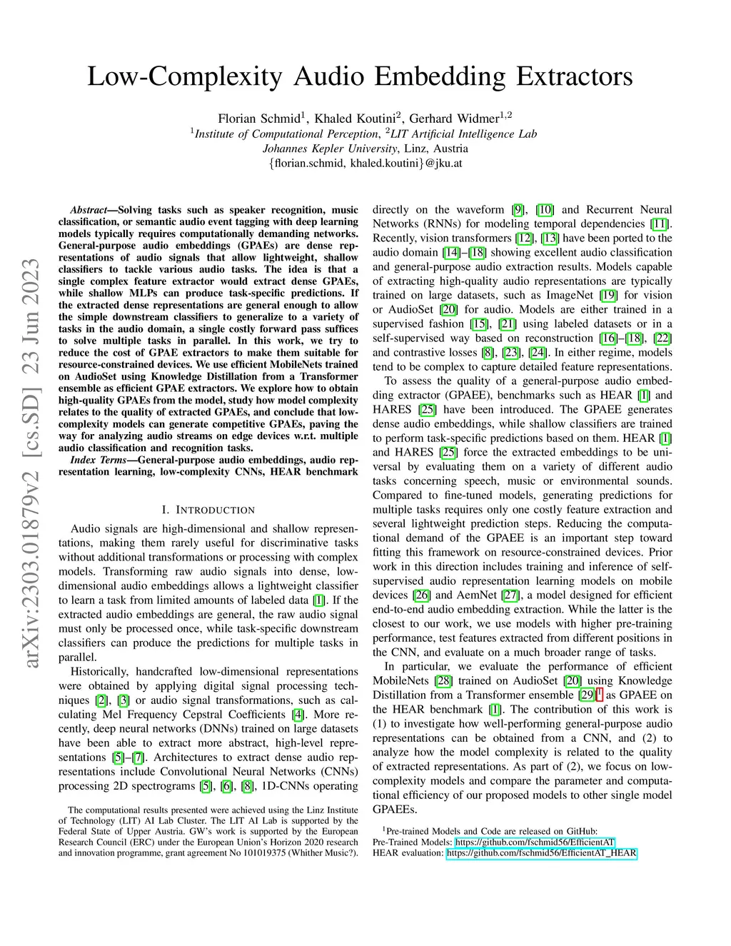 Low-Complexity Audio Embedding Extractors