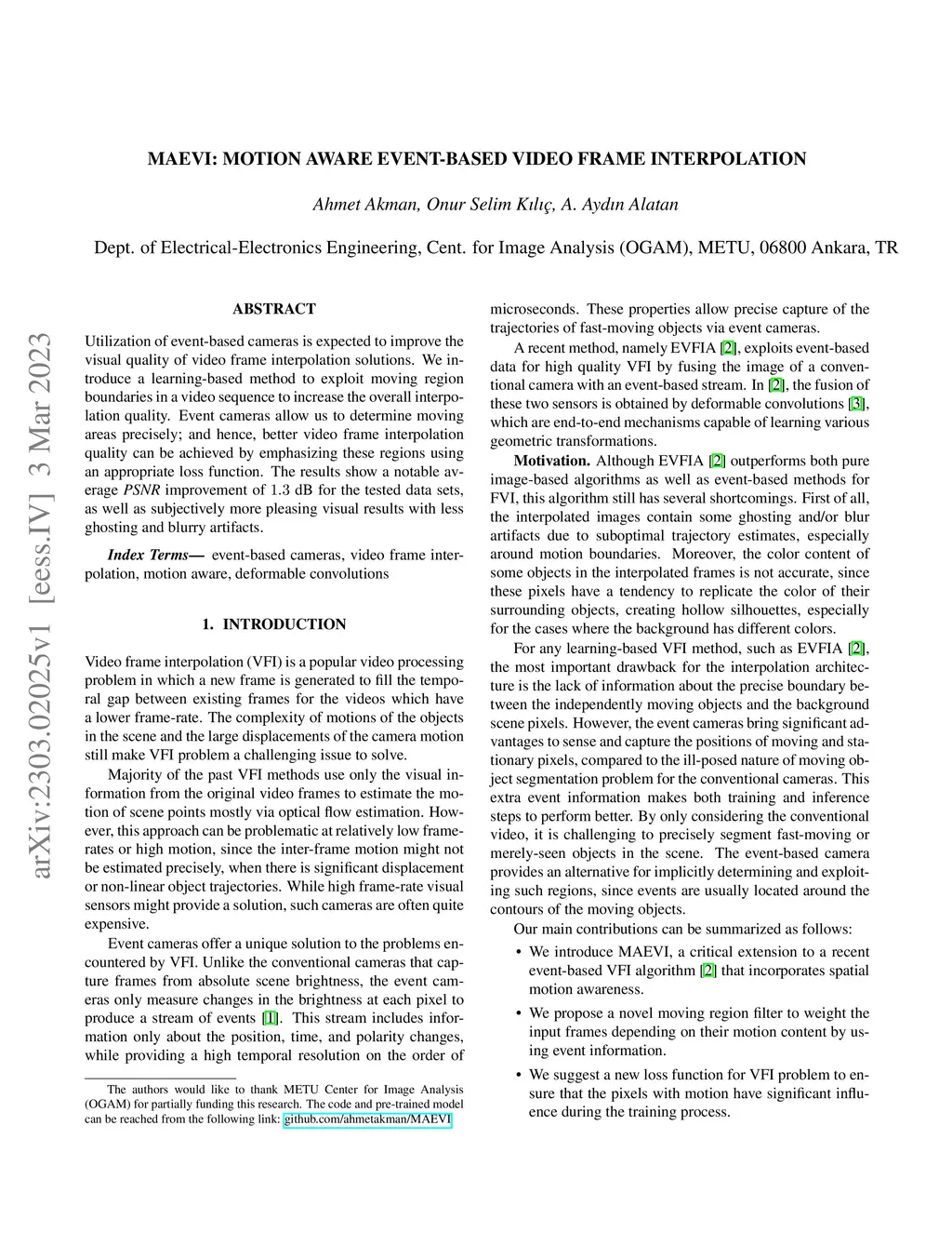 MAEVI: Motion Aware Event-Based Video Frame Interpolation