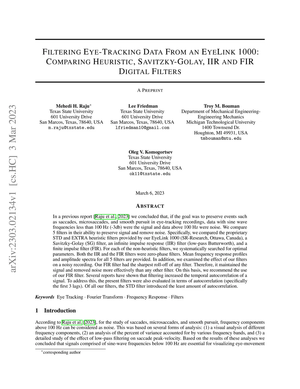 Filtering Eye-Tracking Data From an EyeLink 1000: Comparing Heuristic,