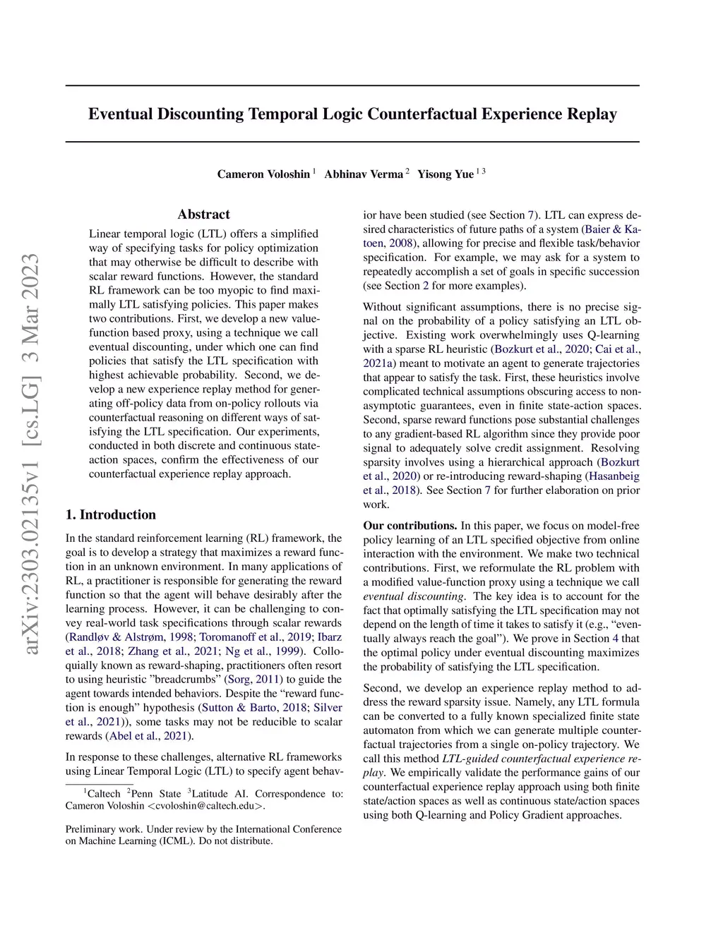 Eventual Discounting Temporal Logic Counterfactual Experience Replay