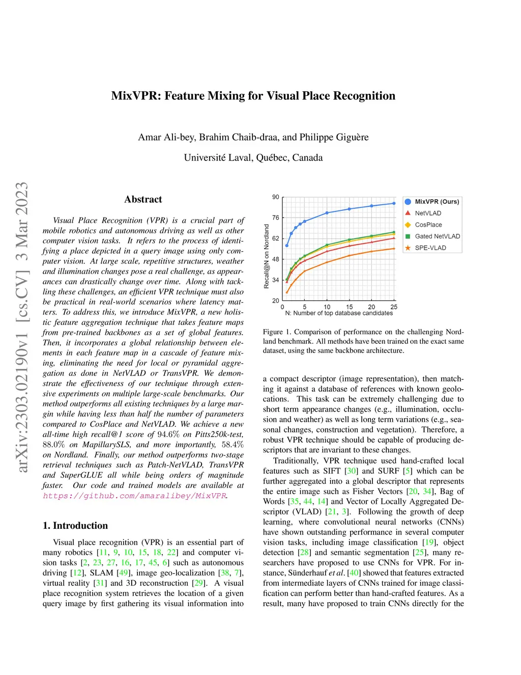 Visual Place Recognition (VPR) is a crucial part of mobile robotics and autonomous driving as well as other computer vision tasks. It refers to the process of identifying a place depicted in a query image using only computer vision. At large scale, repetitive structures, weather and illumination changes pose a real challenge, as appearances can drastically change over time. Along with tackling these challenges, an efficient VPR technique must also be practical in real-world scenarios where latency matters. To address this, we introduce MixVPR, a new holistic feature aggregation technique that takes feature maps from pre-trained backbones as a set of global features. Then, it incorporates a global relationship between elements in each feature map in a cascade of feature mixing, eliminating the need for local or pyramidal aggregation as done in NetVLAD or TransVPR. We demonstrate the effectiveness of our technique through extensive experiments on multiple large-scale benchmarks. Our method outperforms all existing techniques by a large margin while having less than half the number of parameters compared to CosPlace and NetVLAD. We achieve a new all-time high recall@1 score of 94.6% on Pitts250k-test, 88.0% on MapillarySLS, and more importantly, 58.4% on Nordland. Finally, our method outperforms two-stage retrieval techniques such as Patch-NetVLAD, TransVPR and SuperGLUE all while being orders of magnitude faster. Our code and trained models are available at https://github.com/amaralibey/MixVPR.