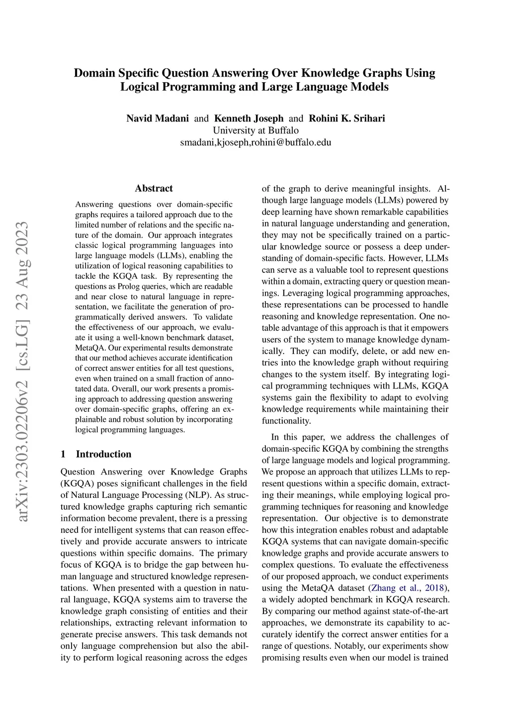 Answering questions over domain-specific graphs requires a tailored approach due to the limited number of relations and the specific nature of the domain. Our approach integrates classic logical programming languages into large language models (LLMs), enabling the utilization of logical reasoning capabilities to tackle the KGQA task. By representing the questions as Prolog queries, which are readable and near close to natural language in representation, we facilitate the generation of programmatically derived answers. To validate the effectiveness of our approach, we evaluate it using a well-known benchmark dataset, MetaQA. Our experimental results demonstrate that our method achieves accurate identification of correct answer entities for all test questions, even when trained on a small fraction of annotated data. Overall, our work presents a promising approach to addressing question answering over domain-specific graphs, offering an explainable and robust solution by incorporating logical programming languages.