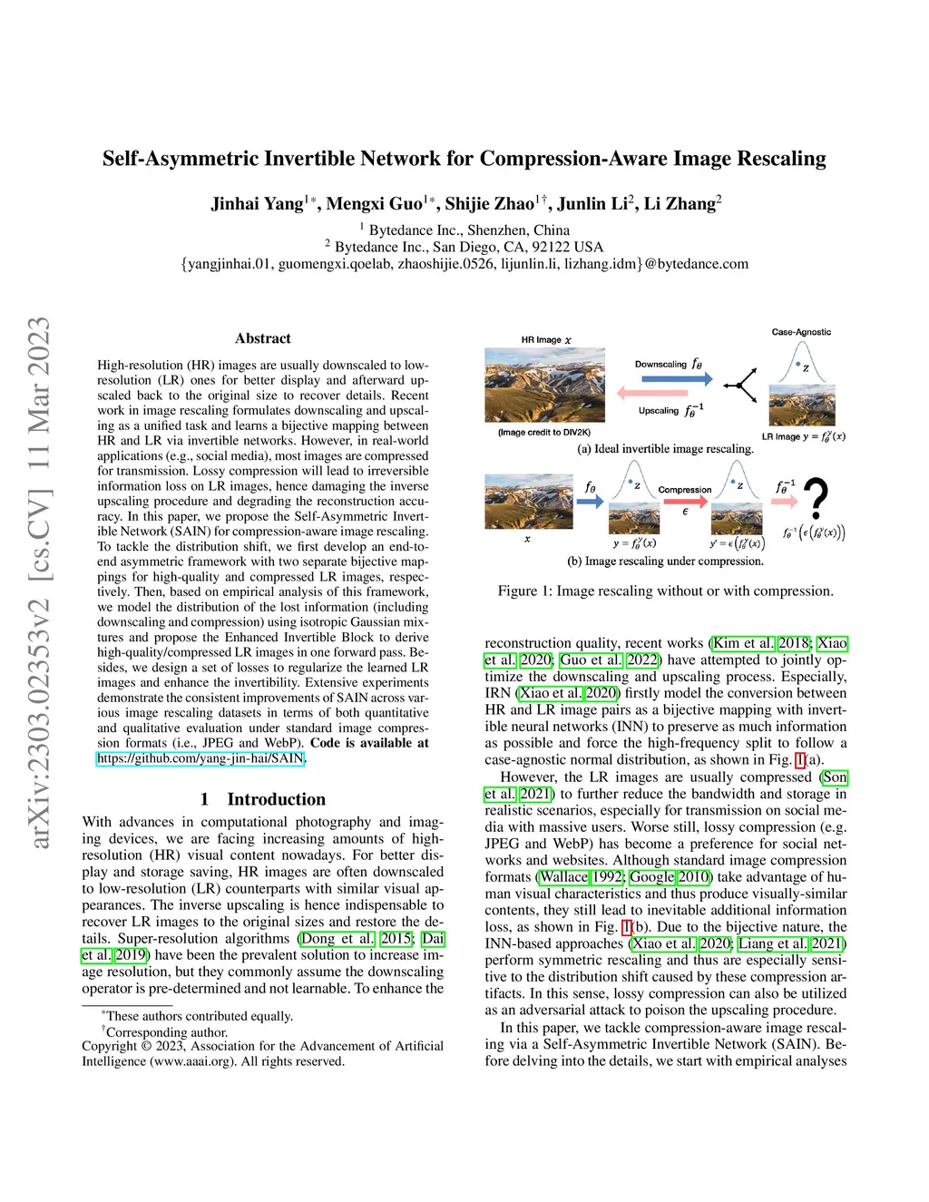 Self-Asymmetric Invertible Network for Compression-Aware Image Rescaling