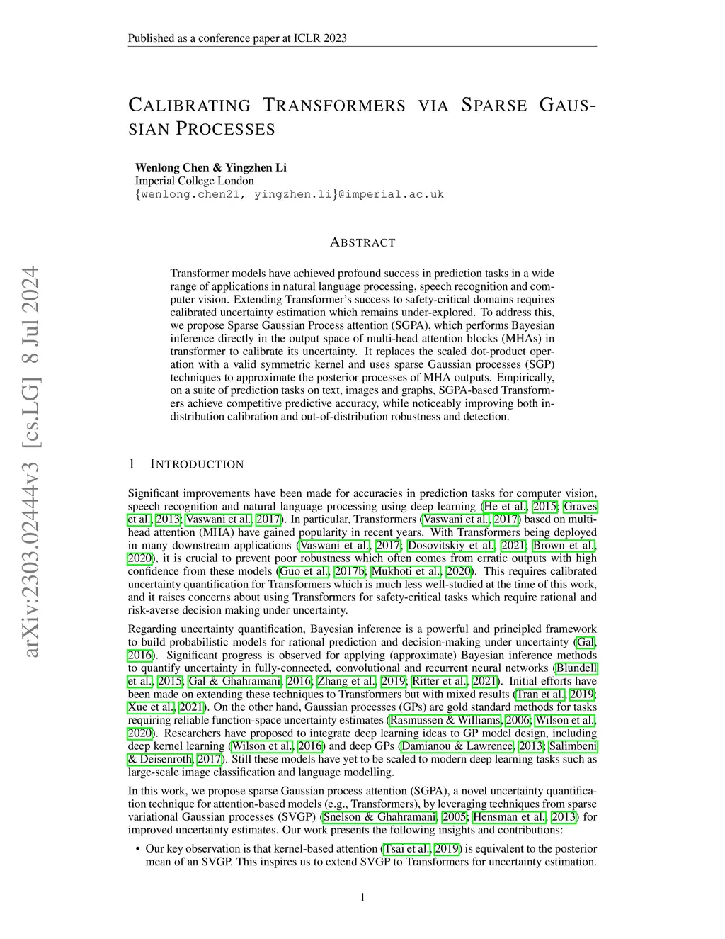 Calibrating Transformers via Sparse Gaussian Processes