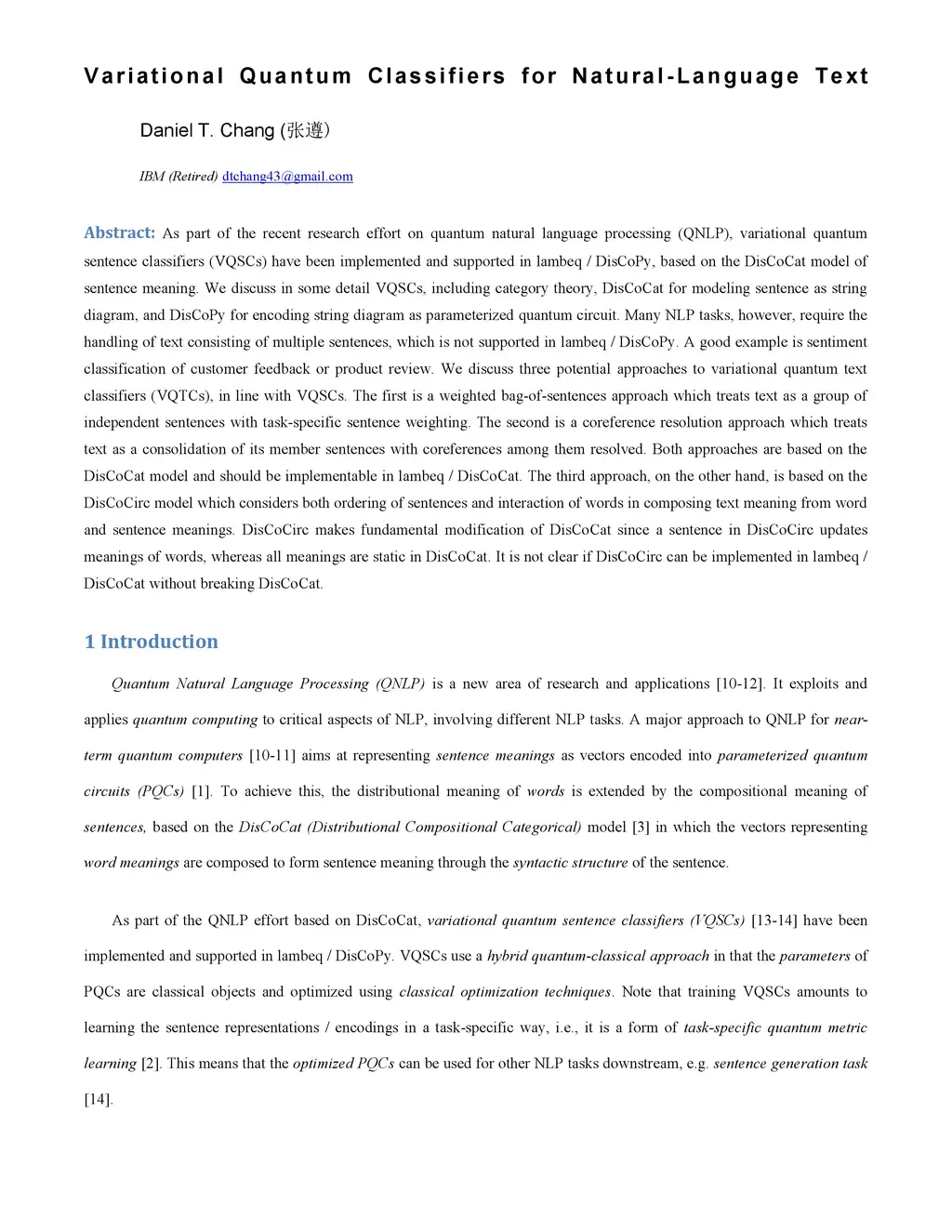Variational Quantum Classifiers for Natural-Language Text