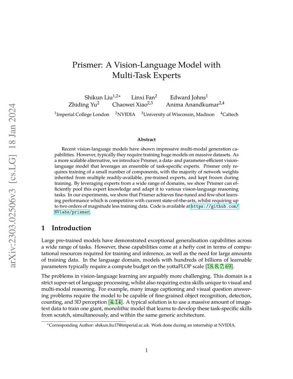 Prismer: A Vision-Language Model with Multi-Task Experts