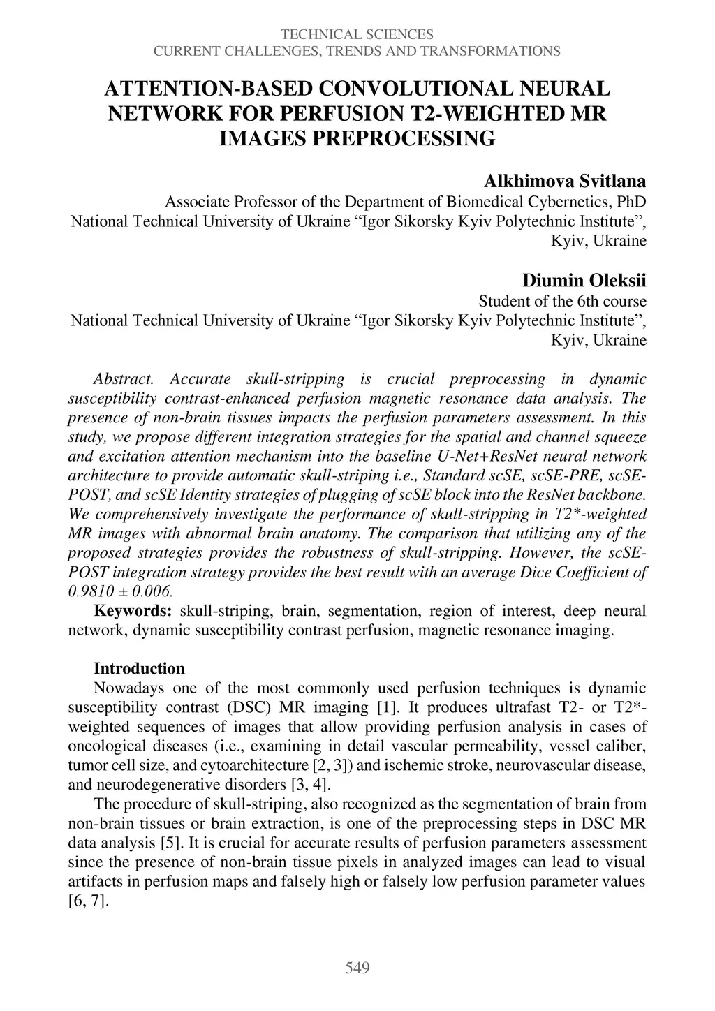 Accurate skull-stripping is crucial preprocessing in dynamic susceptibility contrast-enhanced perfusion magnetic resonance data analysis. The presence of non-brain tissues impacts the perfusion parameters assessment. In this study, we propose different integration strategies for the spatial and channel squeeze and excitation attention mechanism into the baseline U-Net+ResNet neural network architecture to provide automatic skull-striping i.e., Standard scSE, scSE-PRE, scSE-POST, and scSE Identity strategies of plugging of scSE block into the ResNet backbone. We comprehensively investigate the performance of skull-stripping in T2-star weighted MR images with abnormal brain anatomy. The comparison that utilizing any of the proposed strategies provides the robustness of skull-stripping. However, the scSE-POST integration strategy provides the best result with an average Dice Coefficient of 0.9810.
