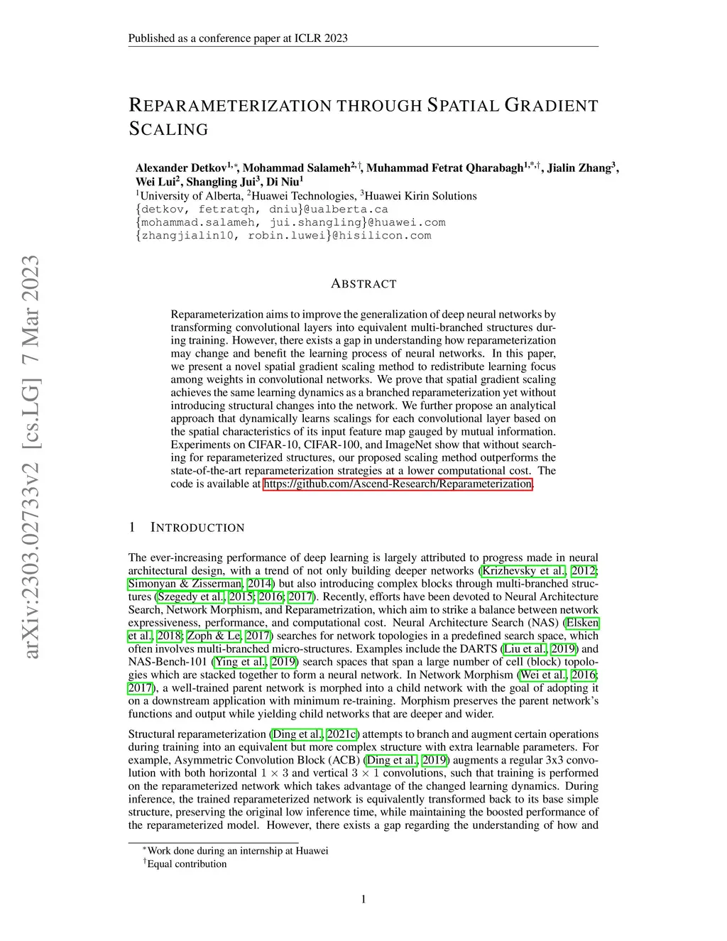 Reparameterization aims to improve the generalization of deep neural networks by transforming convolutional layers into equivalent multi-branched structures during training. However, there exists a gap in understanding how reparameterization may change and benefit the learning process of neural networks. In this paper, we present a novel spatial gradient scaling method to redistribute learning focus among weights in convolutional networks. We prove that spatial gradient scaling achieves the same learning dynamics as a branched reparameterization yet without introducing structural changes into the network. We further propose an analytical approach that dynamically learns scalings for each convolutional layer based on the spatial characteristics of its input feature map gauged by mutual information. Experiments on CIFAR-10, CIFAR-100, and ImageNet show that without searching for reparameterized structures, our proposed scaling method outperforms the state-of-the-art reparameterization strategies at a lower computational cost.