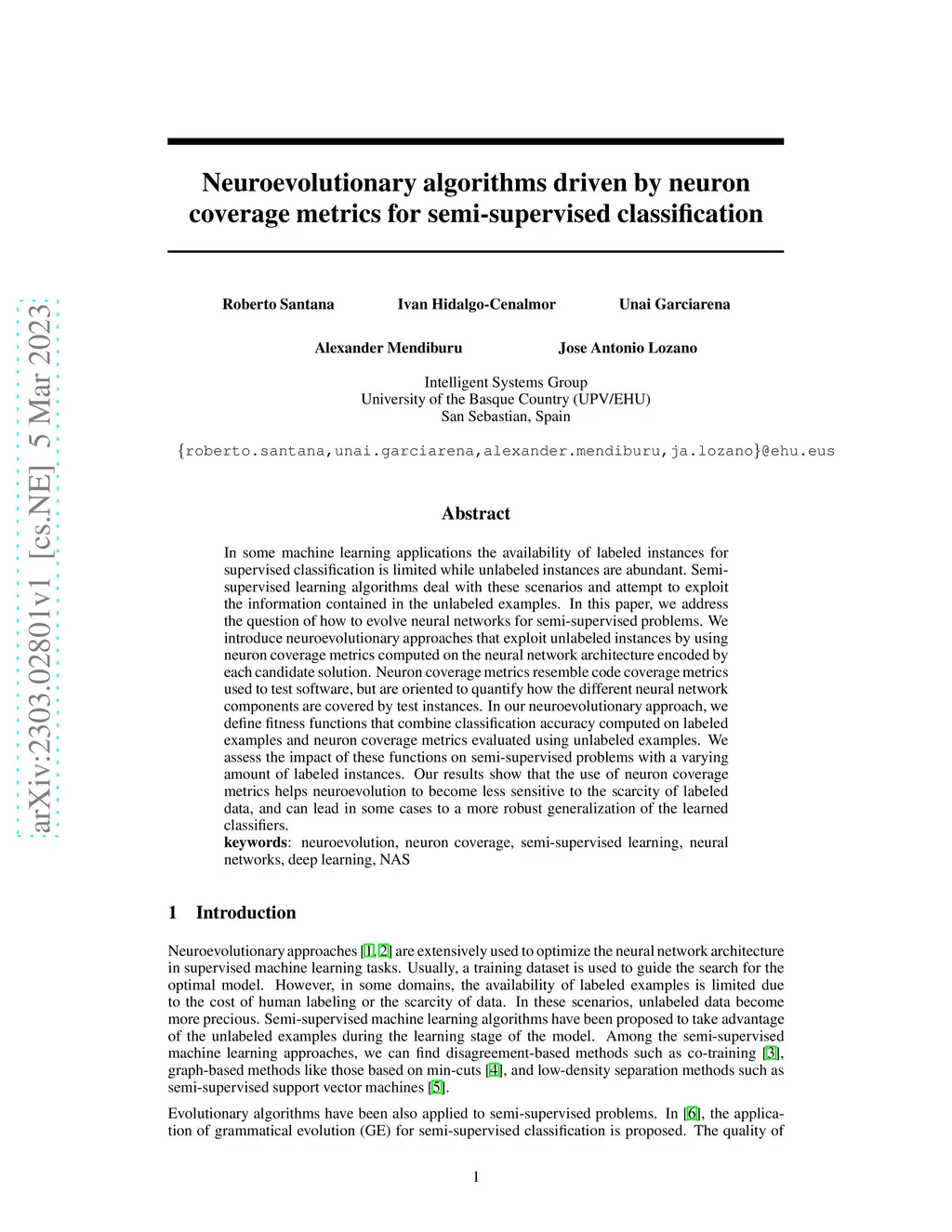 In some machine learning applications the availability of labeled instances for supervised classification is limited while unlabeled instances are abundant. Semi-supervised learning algorithms deal with these scenarios and attempt to exploit the information contained in the unlabeled examples. In this paper, we address the question of how to evolve neural networks for semi-supervised problems. We introduce neuroevolutionary approaches that exploit unlabeled instances by using neuron coverage metrics computed on the neural network architecture encoded by each candidate solution. Neuron coverage metrics resemble code coverage metrics used to test software, but are oriented to quantify how the different neural network components are covered by test instances. In our neuroevolutionary approach, we define fitness functions that combine classification accuracy computed on labeled examples and neuron coverage metrics evaluated using unlabeled examples. We assess the impact of these functions on semi-supervised problems with a varying amount of labeled instances. Our results show that the use of neuron coverage metrics helps neuroevolution to become less sensitive to the scarcity of labeled data, and can lead in some cases to a more robust generalization of the learned classifiers.