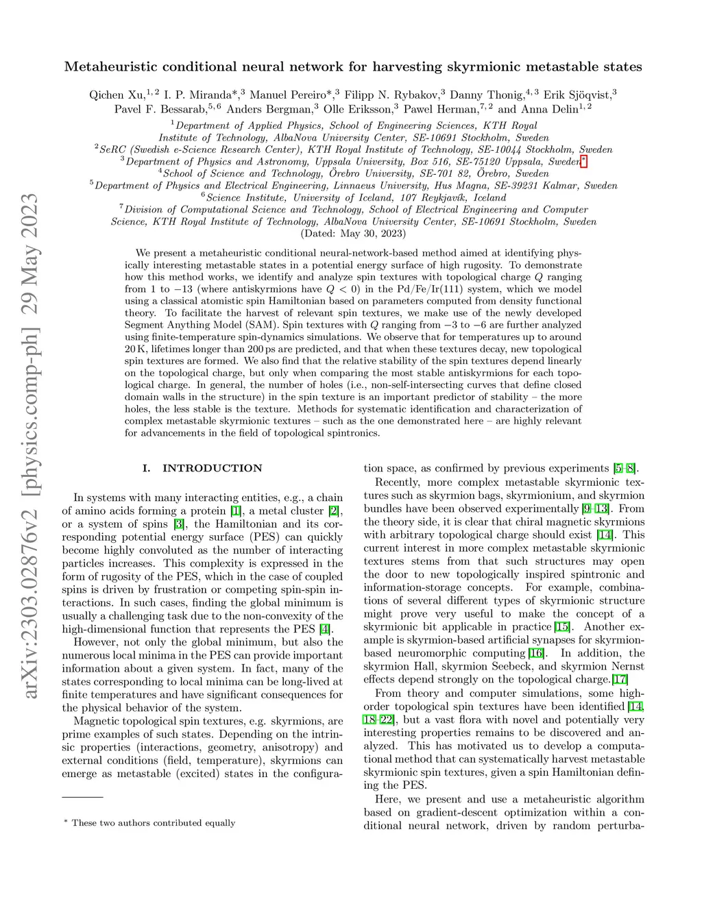 We present a metaheuristic conditional neural-network-based method aimed at identifying physically interesting metastable states in a potential energy surface of high rugosity. To demonstrate how this method works, we identify and analyze spin textures with topological charge ranging from 1 to (where antiskyrmions have ) in the Pd/Fe/Ir(111) system, which we model using a classical atomistic spin Hamiltonian based on parameters computed from density functional theory. To facilitate the harvest of relevant spin textures, we make use of the newly developed Segment Anything Model (SAM). Spin textures with ranging from to are further analyzed using finite-temperature spin-dynamics simulations. We observe that for temperatures up to around 20\,K, lifetimes longer than 200\,ps are predicted, and that when these textures decay, new topological spin textures are formed. We also find that the relative stability of the spin textures depend linearly on the topological charge, but only when comparing the most stable antiskyrmions for each topological charge. In general, the number of holes (i.e., non-self-intersecting curves that define closed domain walls in the structure) in the spin texture is an important predictor of stability -- the more holes, the less stable is the texture. Methods for systematic identification and characterization of complex metastable skyrmionic textures -- such as the one demonstrated here -- are highly relevant for advancements in the field of topological spintronics.