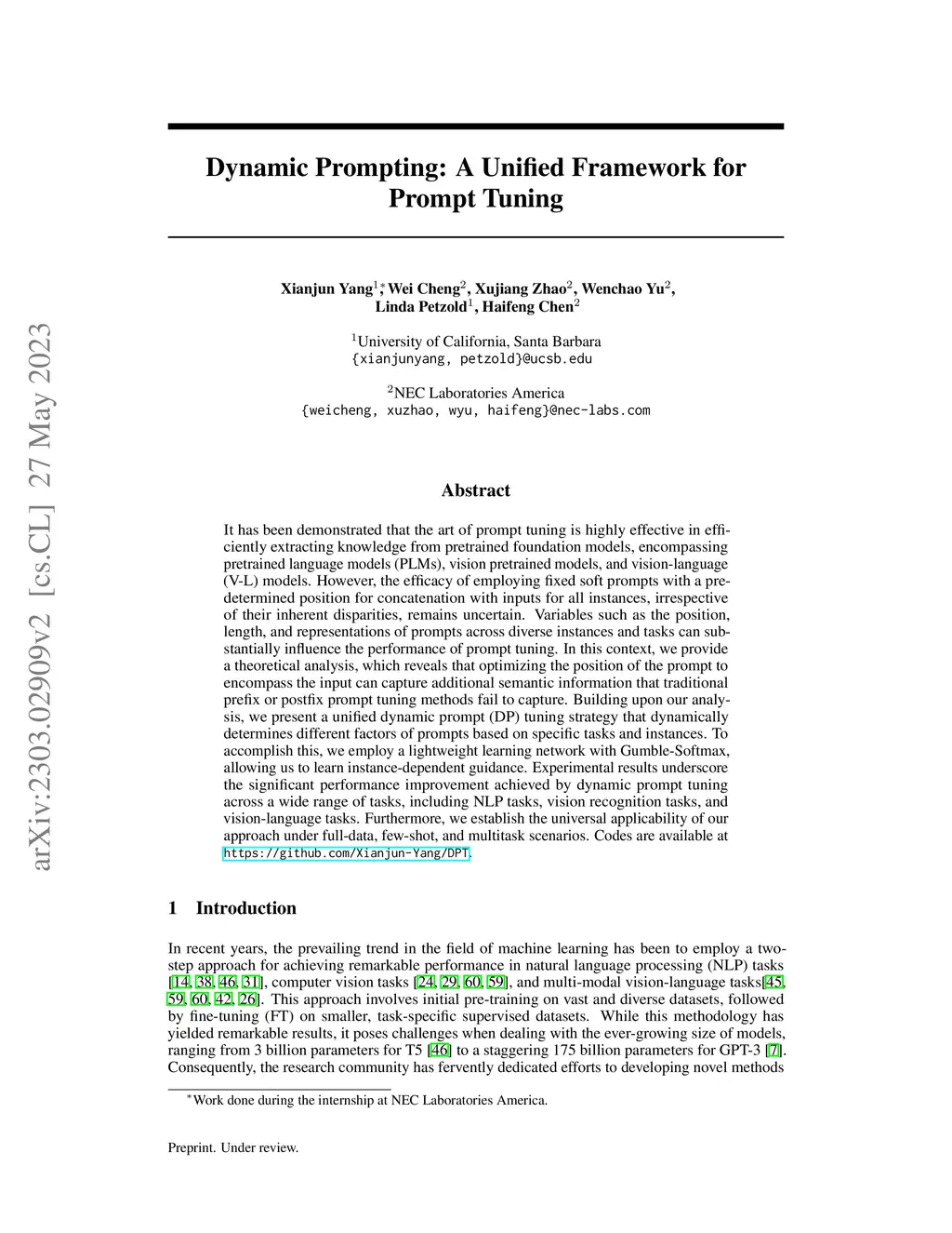 Dynamic Prompting: A Unified Framework for Prompt Tuning
