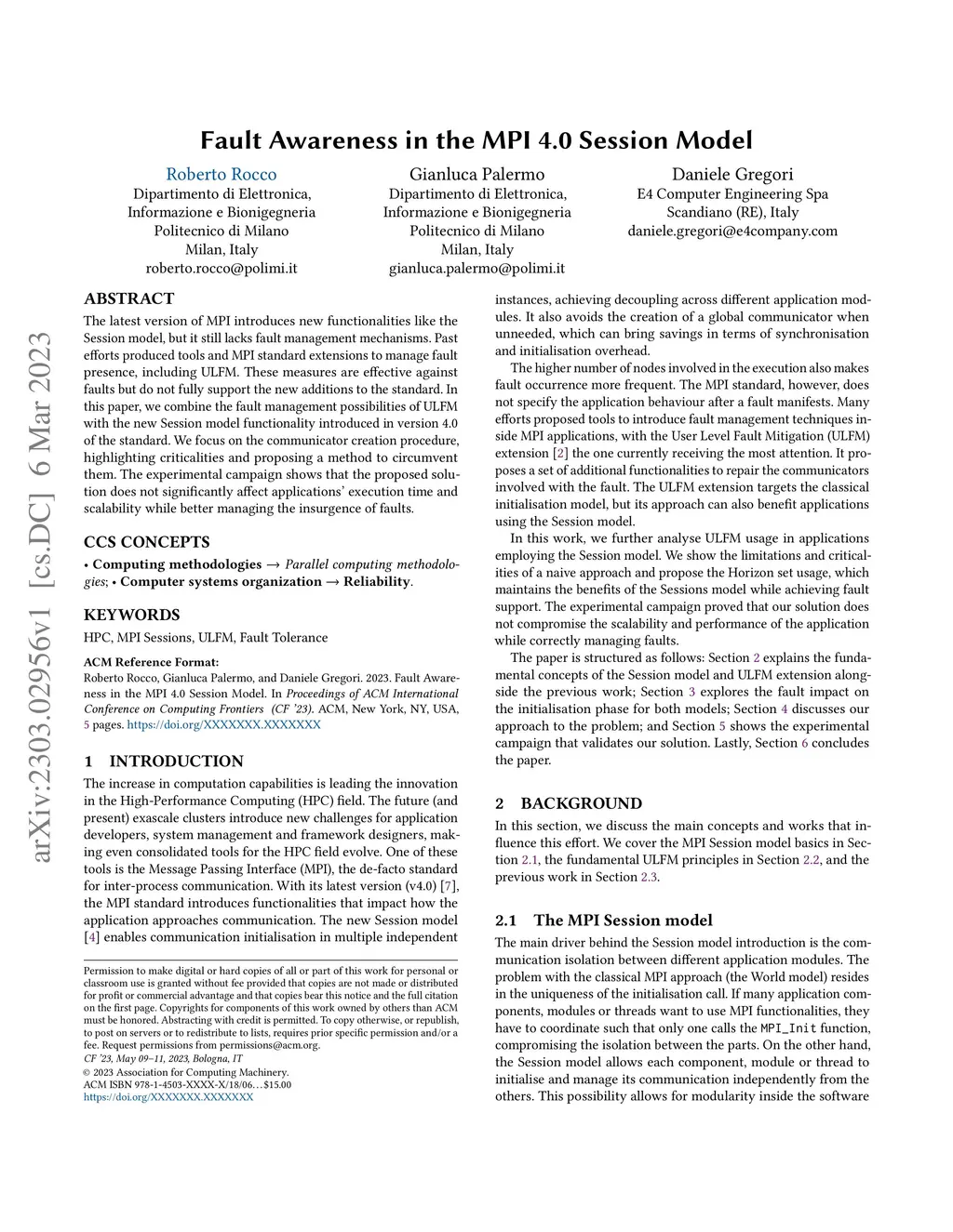 The latest version of MPI introduces new functionalities like the Session model, but it still lacks fault management mechanisms. Past efforts produced tools and MPI standard extensions to manage fault presence, including ULFM. These measures are effective against faults but do not fully support the new additions to the standard. In this paper, we combine the fault management possibilities of ULFM with the new Session model functionality introduced in version 4.0 of the standard. We focus on the communicator creation procedure, highlighting criticalities and proposing a method to circumvent them. The experimental campaign shows that the proposed solution does not significantly affect applications' execution time and scalability while better managing the insurgence of faults.
