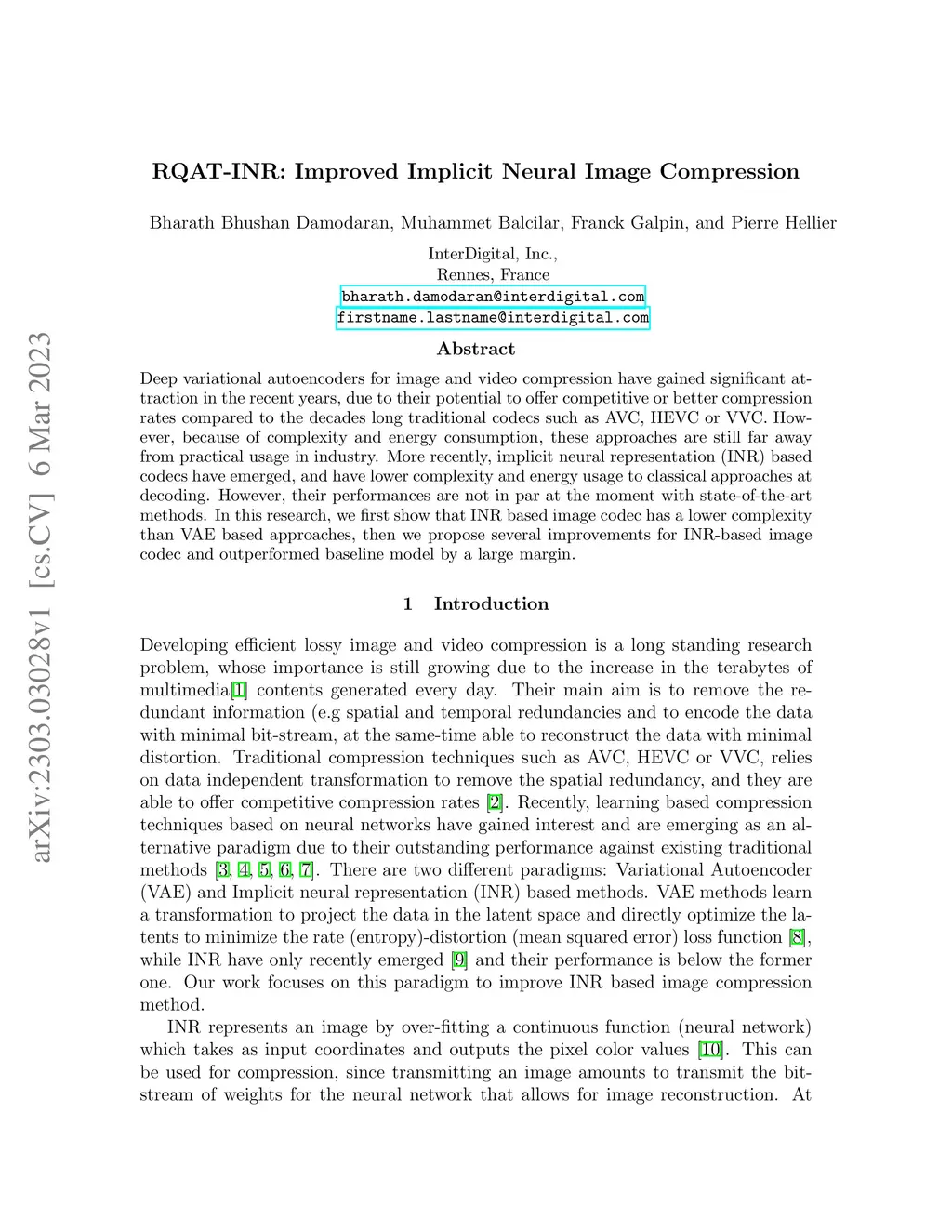 RQAT-INR: Improved Implicit Neural Image Compression