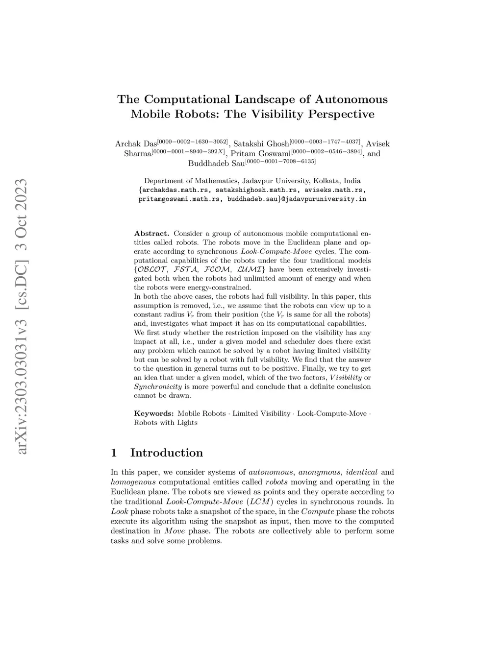 The Computational Landscape of Autonomous Mobile Robots: The Visibility
