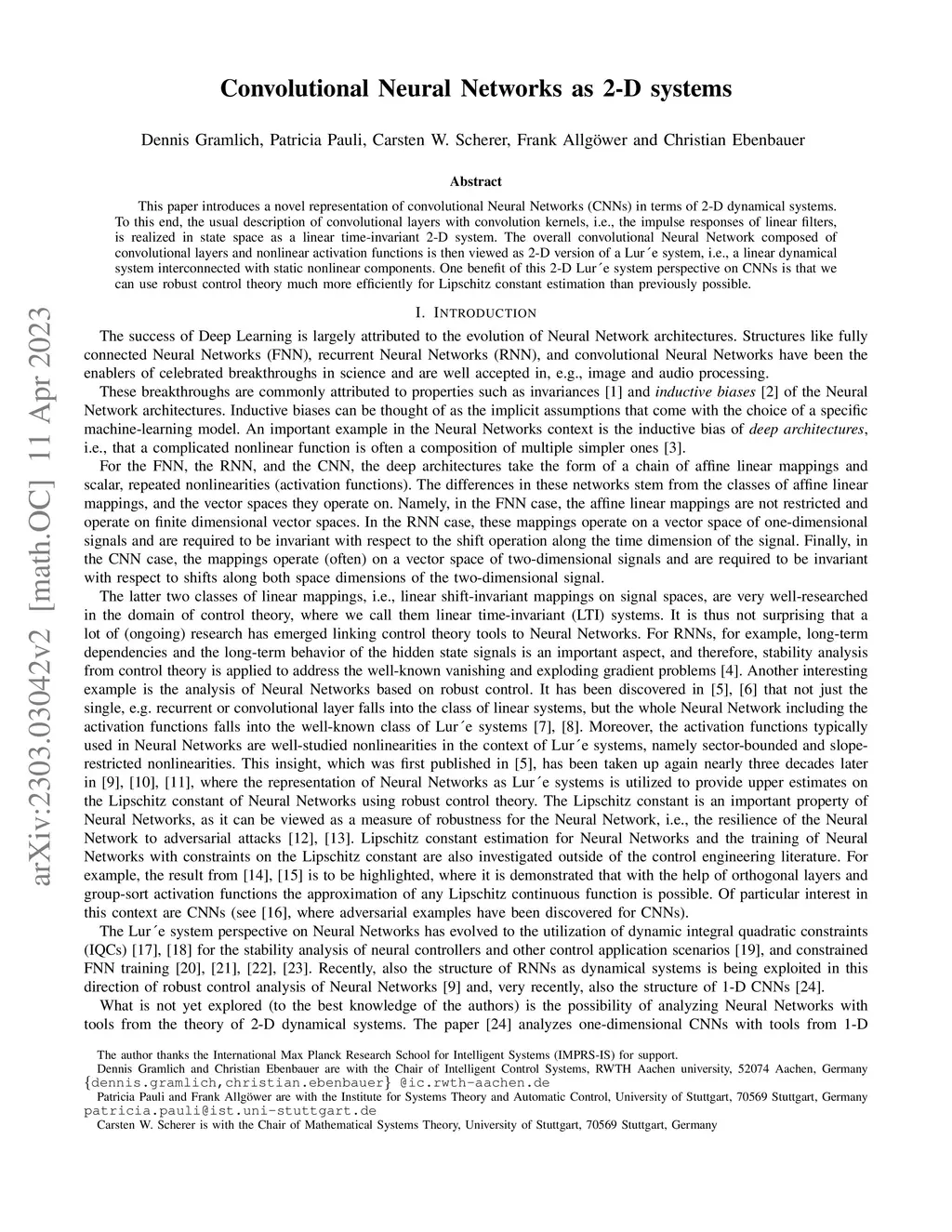 Convolutional Neural Networks as 2-D systems