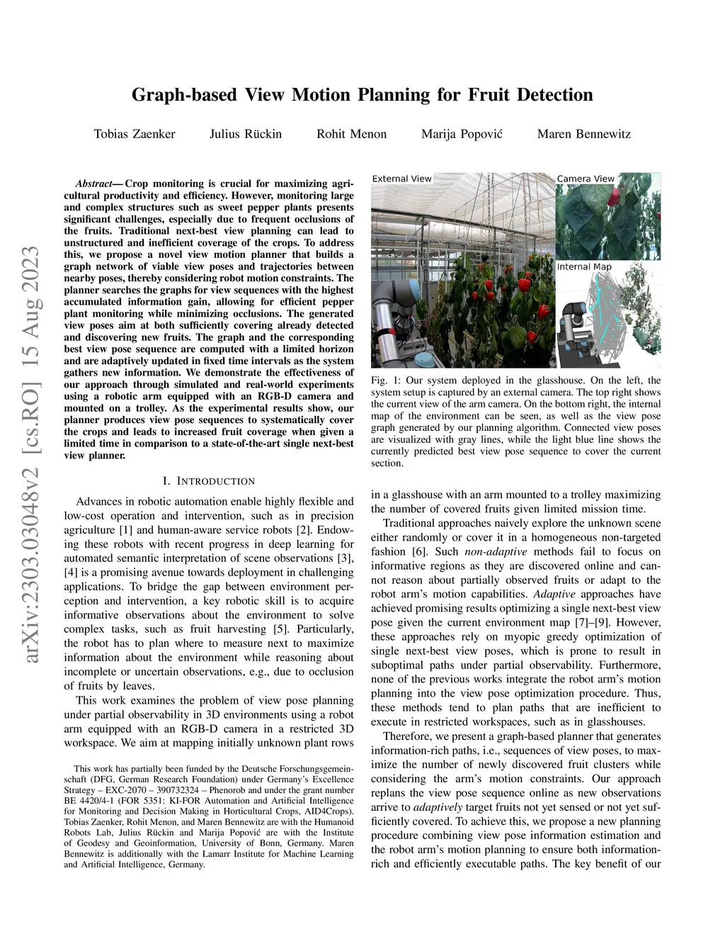 Graph-based View Motion Planning for Fruit Detection