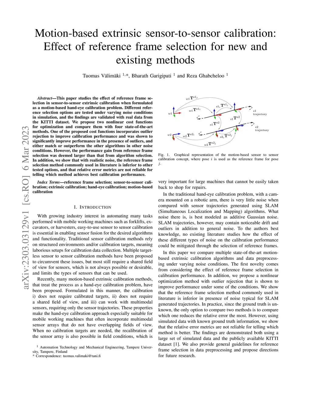 Motion-based extrinsic sensor-to-sensor calibration: Effect of reference