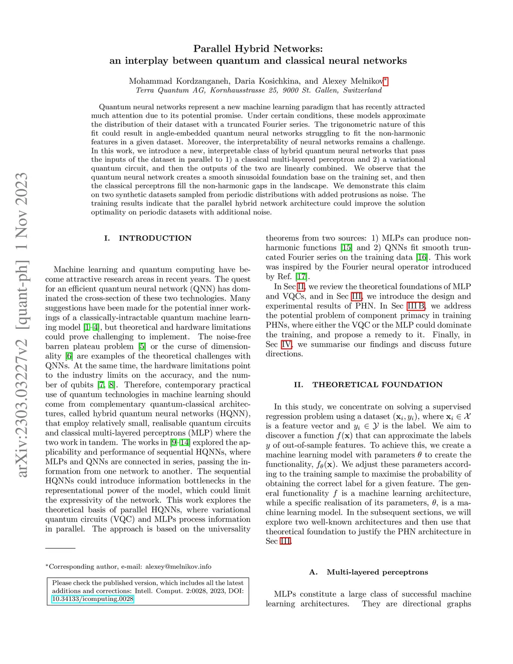 Quantum neural networks represent a new machine learning paradigm that has recently attracted much attention due to its potential promise. Under certain conditions, these models approximate the distribution of their dataset with a truncated Fourier series. The trigonometric nature of this fit could result in angle-embedded quantum neural networks struggling to fit the non-harmonic features in a given dataset. Moreover, the interpretability of neural networks remains a challenge. In this work, we introduce a new, interpretable class of hybrid quantum neural networks that pass the inputs of the dataset in parallel to 1) a classical multi-layered perceptron and 2) a variational quantum circuit, and then the outputs of the two are linearly combined. We observe that the quantum neural network creates a smooth sinusoidal foundation base on the training set, and then the classical perceptrons fill the non-harmonic gaps in the landscape. We demonstrate this claim on two synthetic datasets sampled from periodic distributions with added protrusions as noise. The training results indicate that the parallel hybrid network architecture could improve the solution optimality on periodic datasets with additional noise.