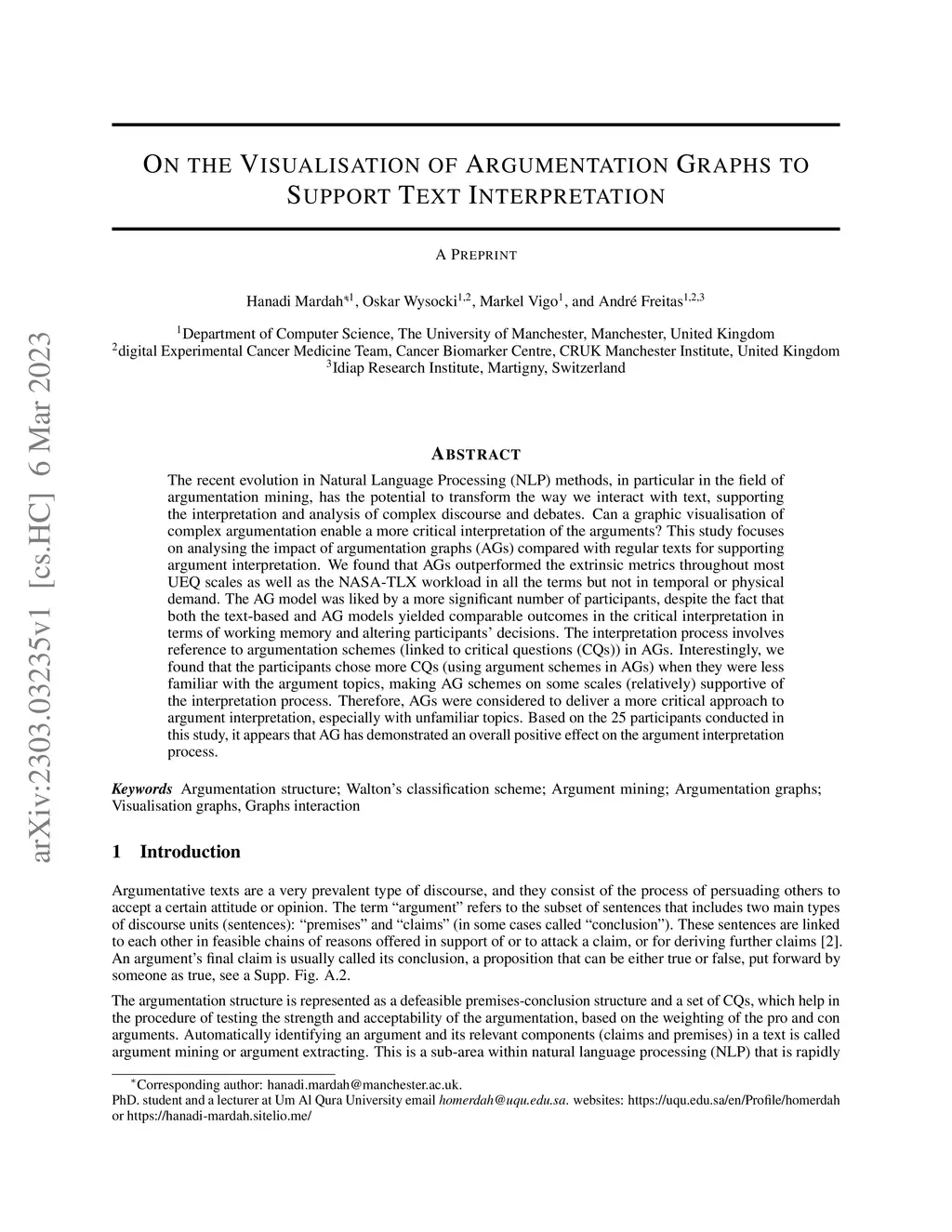 On the Visualisation of Argumentation Graphs to Support Text