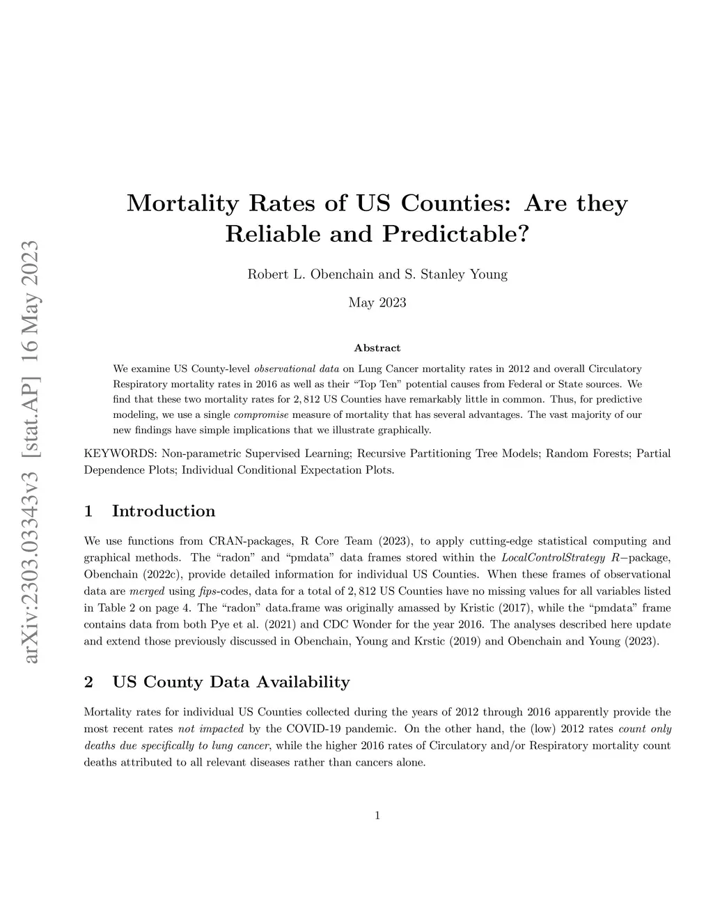 Mortality Rates of US Counties: Are they Reliable and Predictable?