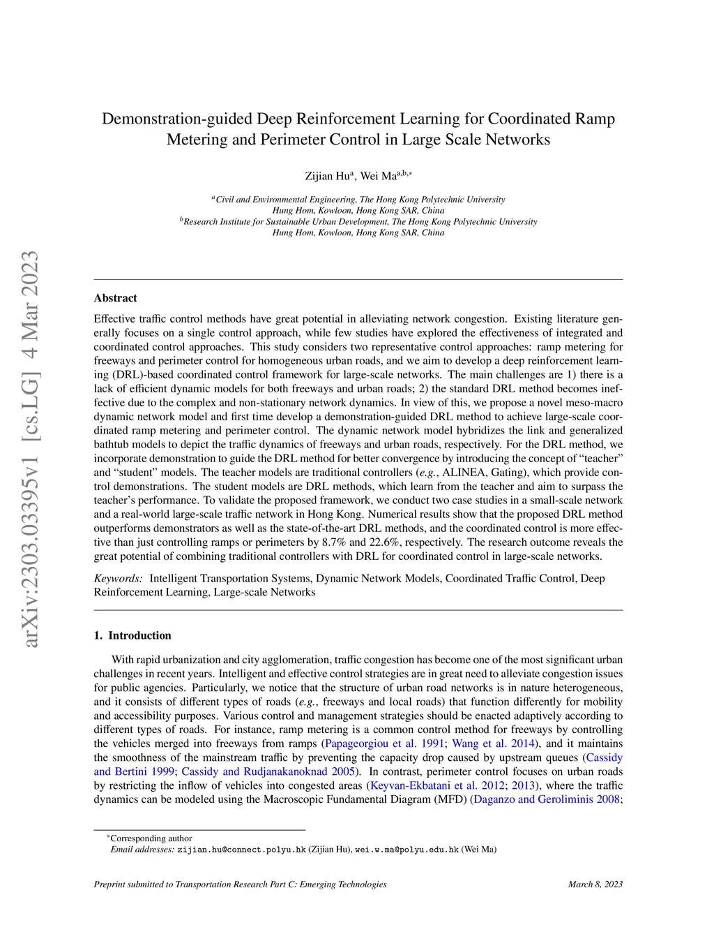 Demonstration-guided Deep Reinforcement Learning for Coordinated Ramp
