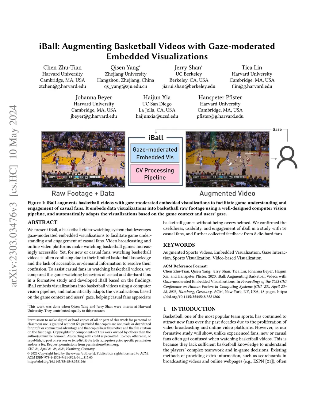 iBall: Augmenting Basketball Videos with Gaze-moderated Embedded