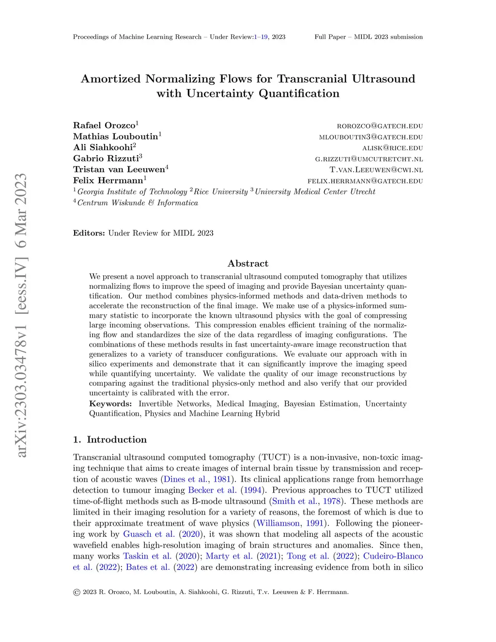 Amortized Normalizing Flows for Transcranial Ultrasound with Uncertainty