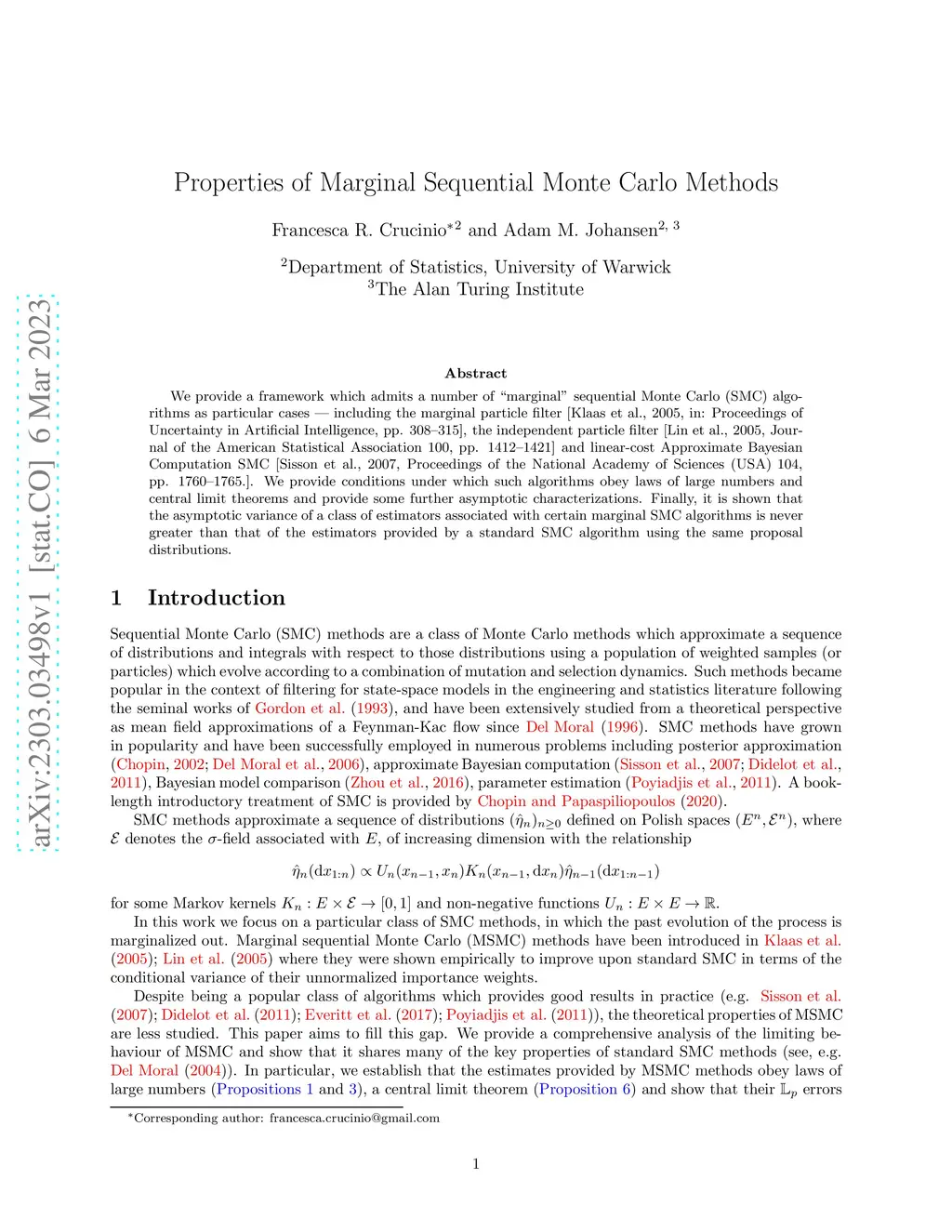 We provide a framework which admits a number of ``marginal'' sequential Monte Carlo (SMC) algorithms as particular cases -- including the marginal particle filter [Klaas et al., 2005, in: Proceedings of Uncertainty in Artificial Intelligence, pp. 308--315], , the independent particle filter [Lin et al., 2005, Journal of the American Statistical Association 100, pp. 1412--1421] and linear-cost Approximate Bayesian Computation SMC [Sisson et al., 2007, Proceedings of the National Academy of Sciences (USA) 104, pp. 1760--1765.]. We provide conditions under which such algorithms obey laws of large numbers and central limit theorems and provide some further asymptotic characterizations. Finally, it is shown that the asymptotic variance of a class of estimators associated with certain marginal SMC algorithms is never greater than that of the estimators provided by a standard SMC algorithm using the same proposal distributions.