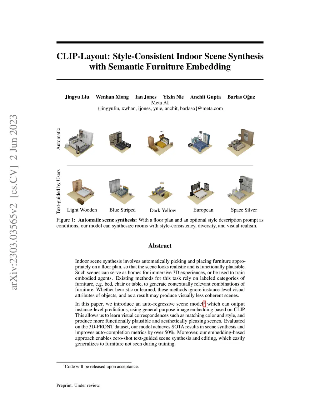 CLIP-Layout: Style-Consistent Indoor Scene Synthesis with Semantic