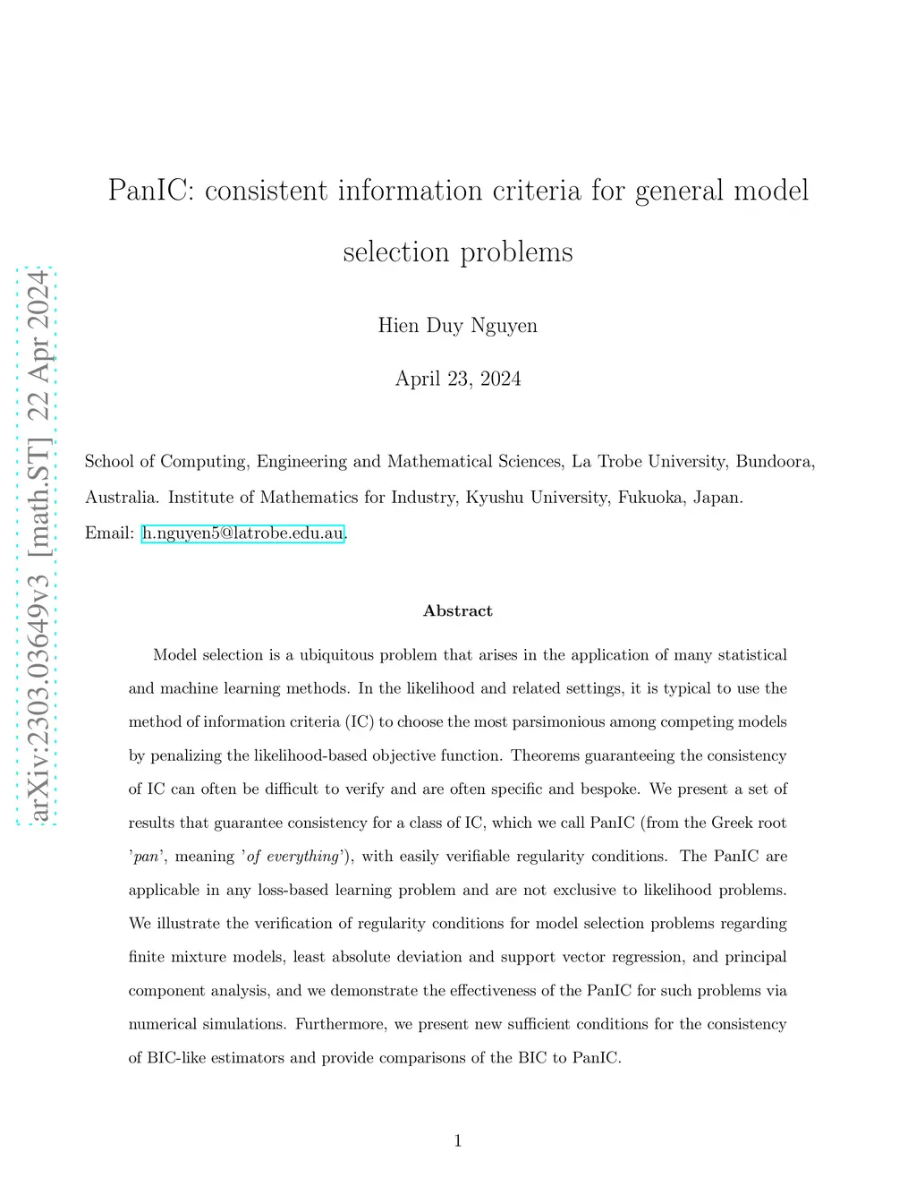 PanIC: consistent information criteria for general model selection