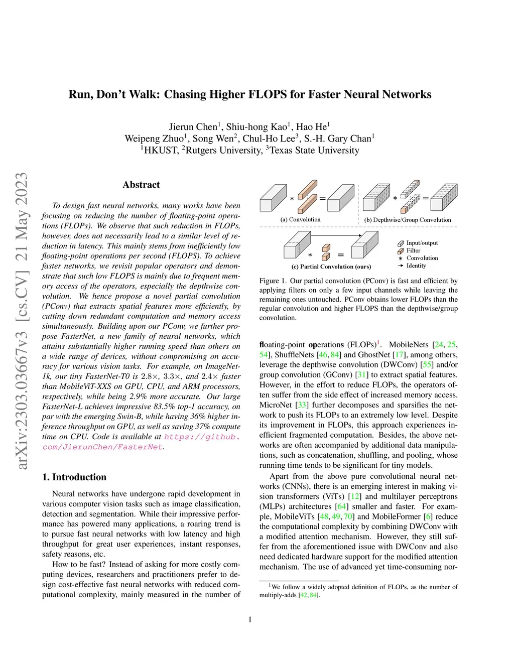 Run, Don't Walk: Chasing Higher FLOPS for Faster Neural Networks