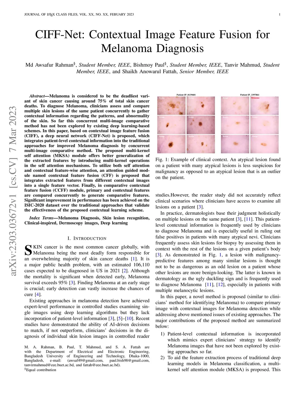 CIFF-Net: Contextual Image Feature Fusion for Melanoma Diagnosis
