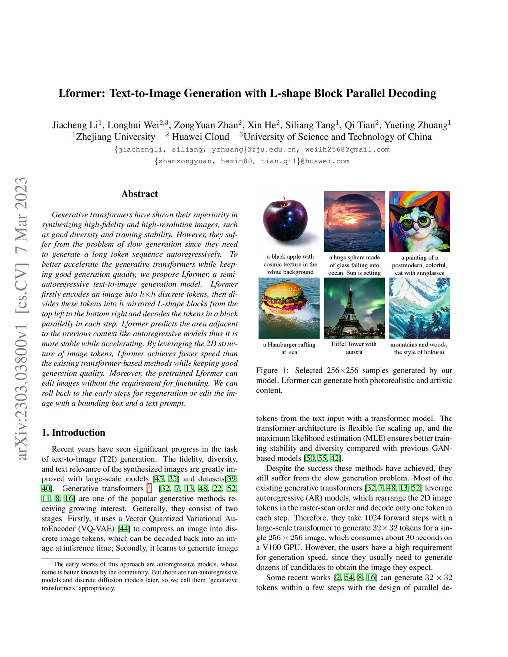Lformer: Text-to-Image Generation with L-shape Block Parallel Decoding