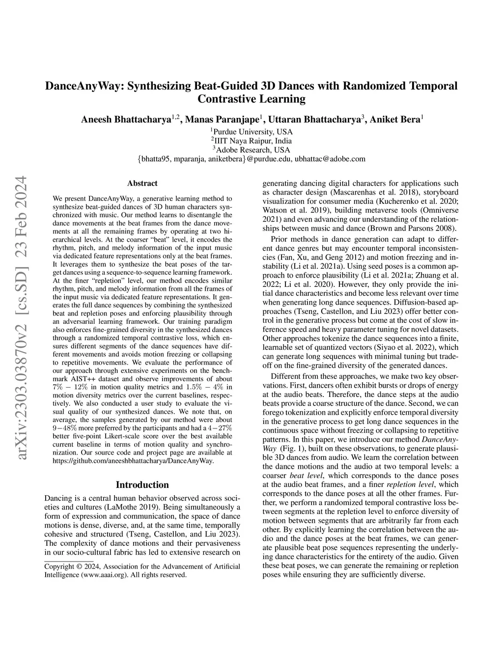 DanceAnyWay: Synthesizing Beat-Guided 3D Dances with Randomized Temporal