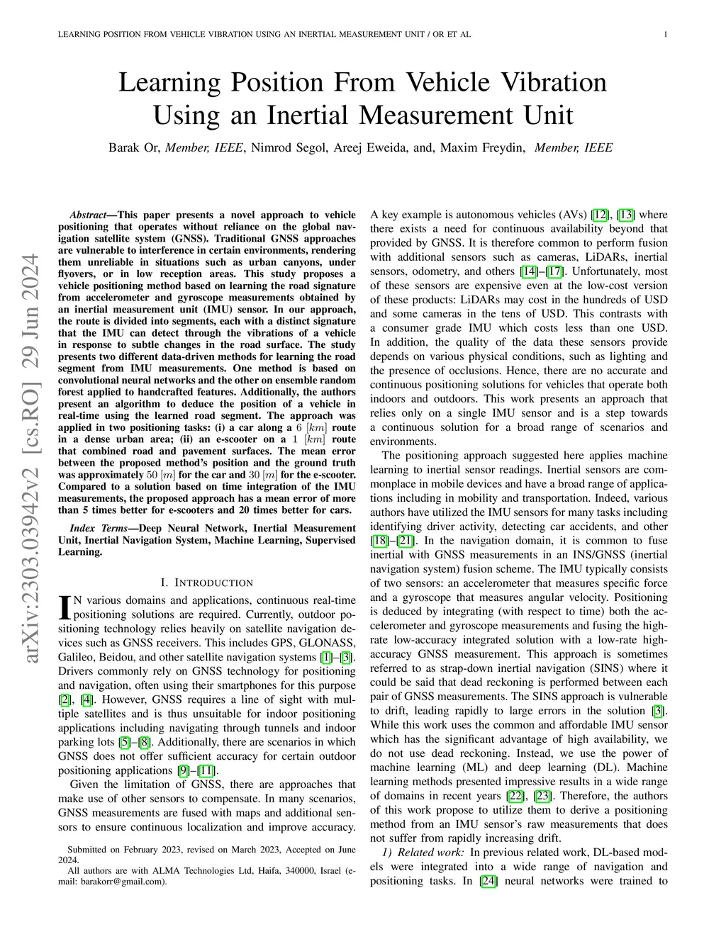 Learning Position From Vehicle Vibration Using an Inertial Measurement