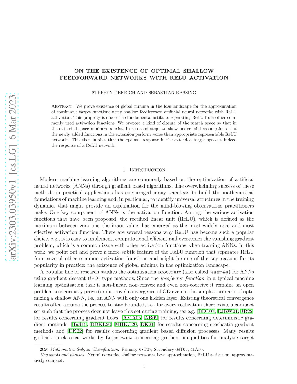 We prove existence of global minima in the loss landscape for the approximation of continuous target functions using shallow feedforward artificial neural networks with ReLU activation. This property is one of the fundamental artifacts separating ReLU from other commonly used activation functions. We propose a kind of closure of the search space so that in the extended space minimizers exist. In a second step, we show under mild assumptions that the newly added functions in the extension perform worse than appropriate representable ReLU networks. This then implies that the optimal response in the extended target space is indeed the response of a ReLU network.
