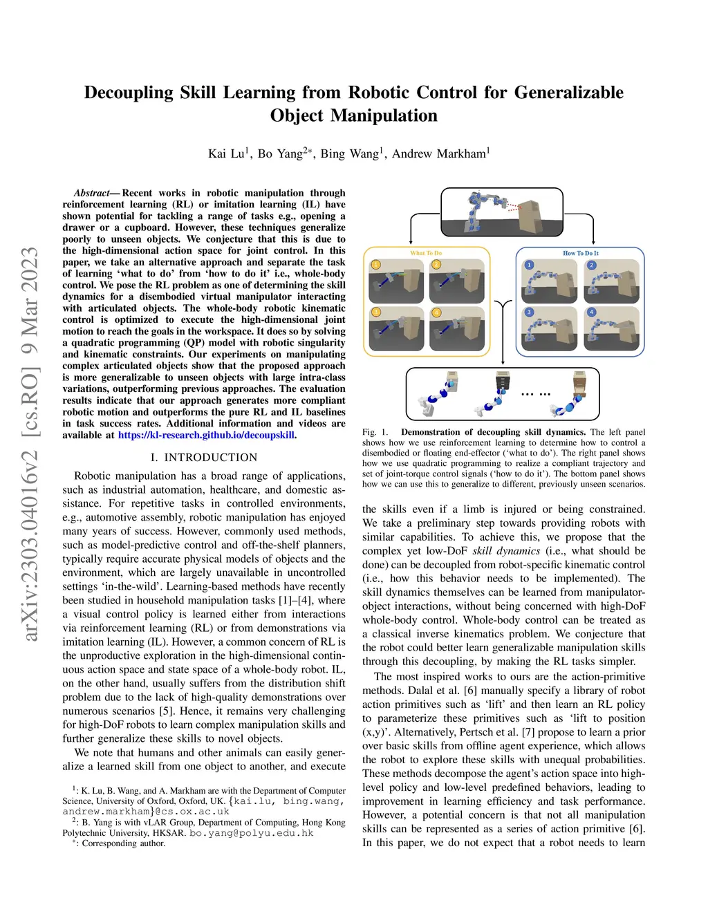 Decoupling Skill Learning from Robotic Control for Generalizable Object