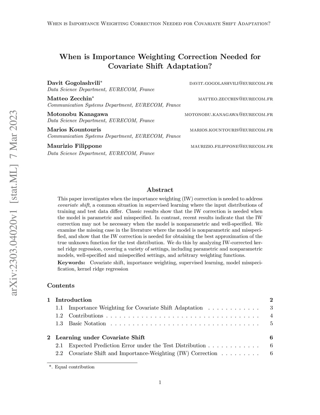 This paper investigates when the importance weighting (IW) correction is needed to address covariate shift, a common situation in supervised learning where the input distributions of training and test data differ. Classic results show that the IW correction is needed when the model is parametric and misspecified. In contrast, recent results indicate that the IW correction may not be necessary when the model is nonparametric and well-specified. We examine the missing case in the literature where the model is nonparametric and misspecified, and show that the IW correction is needed for obtaining the best approximation of the true unknown function for the test distribution. We do this by analyzing IW-corrected kernel ridge regression, covering a variety of settings, including parametric and nonparametric models, well-specified and misspecified settings, and arbitrary weighting functions.