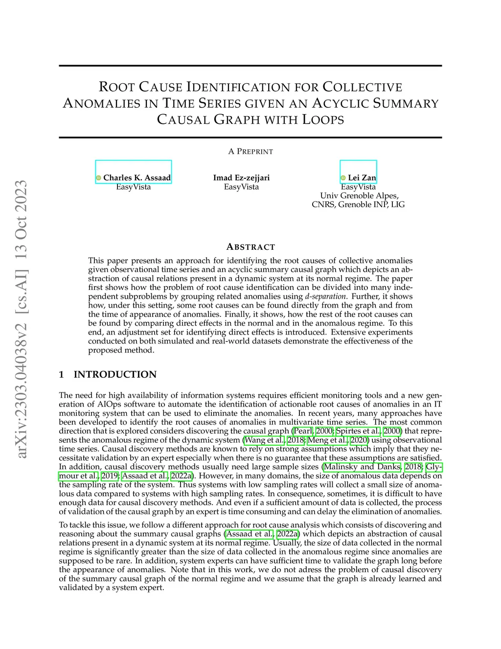 This paper presents an approach for identifying the root causes of collective anomalies given observational time series and an acyclic summary causal graph which depicts an abstraction of causal relations present in a dynamic system at its normal regime. The paper first shows how the problem of root cause identification can be divided into many independent subproblems by grouping related anomalies using d-separation. Further, it shows how, under this setting, some root causes can be found directly from the graph and from the time of appearance of anomalies. Finally, it shows, how the rest of the root causes can be found by comparing direct effects in the normal and in the anomalous regime. To this end, an adjustment set for identifying direct effects is introduced. Extensive experiments conducted on both simulated and real-world datasets demonstrate the effectiveness of the proposed method.