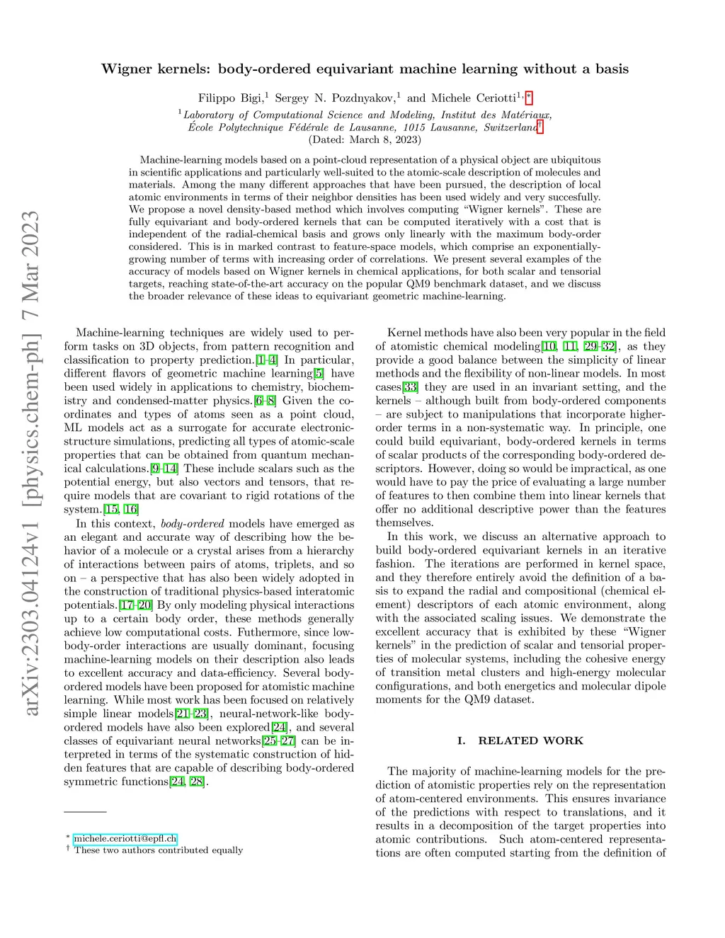Machine-learning models based on a point-cloud representation of a physical object are ubiquitous in scientific applications and particularly well-suited to the atomic-scale description of molecules and materials. Among the many different approaches that have been pursued, the description of local atomic environments in terms of their neighbor densities has been used widely and very succesfully. We propose a novel density-based method which involves computing ``Wigner kernels''. These are fully equivariant and body-ordered kernels that can be computed iteratively with a cost that is independent of the radial-chemical basis and grows only linearly with the maximum body-order considered. This is in marked contrast to feature-space models, which comprise an exponentially-growing number of terms with increasing order of correlations. We present several examples of the accuracy of models based on Wigner kernels in chemical applications, for both scalar and tensorial targets, reaching state-of-the-art accuracy on the popular QM9 benchmark dataset, and we discuss the broader relevance of these ideas to equivariant geometric machine-learning.