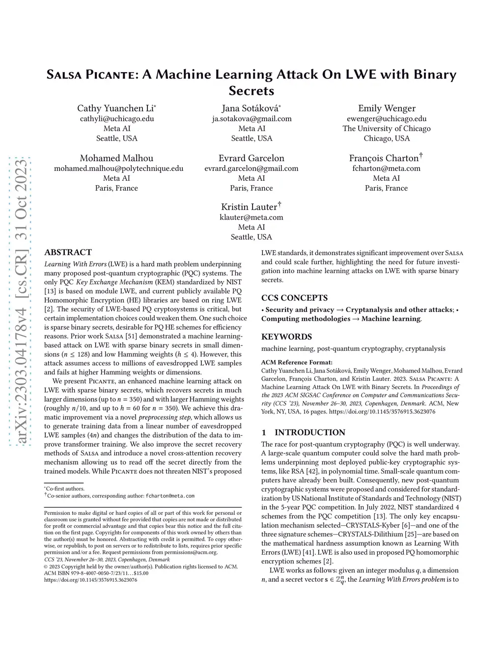 Learning with Errors (LWE) is a hard math problem underpinning many proposed post-quantum cryptographic (PQC) systems. The only PQC Key Exchange Mechanism (KEM) standardized by NIST is based on module~LWE, and current publicly available PQ Homomorphic Encryption (HE) libraries are based on ring LWE. The security of LWE-based PQ cryptosystems is critical, but certain implementation choices could weaken them. One such choice is sparse binary secrets, desirable for PQ HE schemes for efficiency reasons. Prior work, SALSA, demonstrated a machine learning-based attack on LWE with sparse binary secrets in small dimensions () and low Hamming weights (). However, this attack assumes access to millions of eavesdropped LWE samples and fails at higher Hamming weights or dimensions. We present PICANTE, an enhanced machine learning attack on LWE with sparse binary secrets, which recovers secrets in much larger dimensions (up to ) and with larger Hamming weights (roughly , and up to for ). We achieve this dramatic improvement via a novel preprocessing step, which allows us to generate training data from a linear number of eavesdropped LWE samples () and changes the distribution of the data to improve transformer training. We also improve the secret recovery methods of SALSA and introduce a novel cross-attention recovery mechanism allowing us to read off the secret directly from the trained models. While PICANTE does not threaten NIST's proposed LWE standards, it demonstrates significant improvement over SALSA and could scale further, highlighting the need for future investigation into machine learning attacks on LWE with sparse binary secrets.